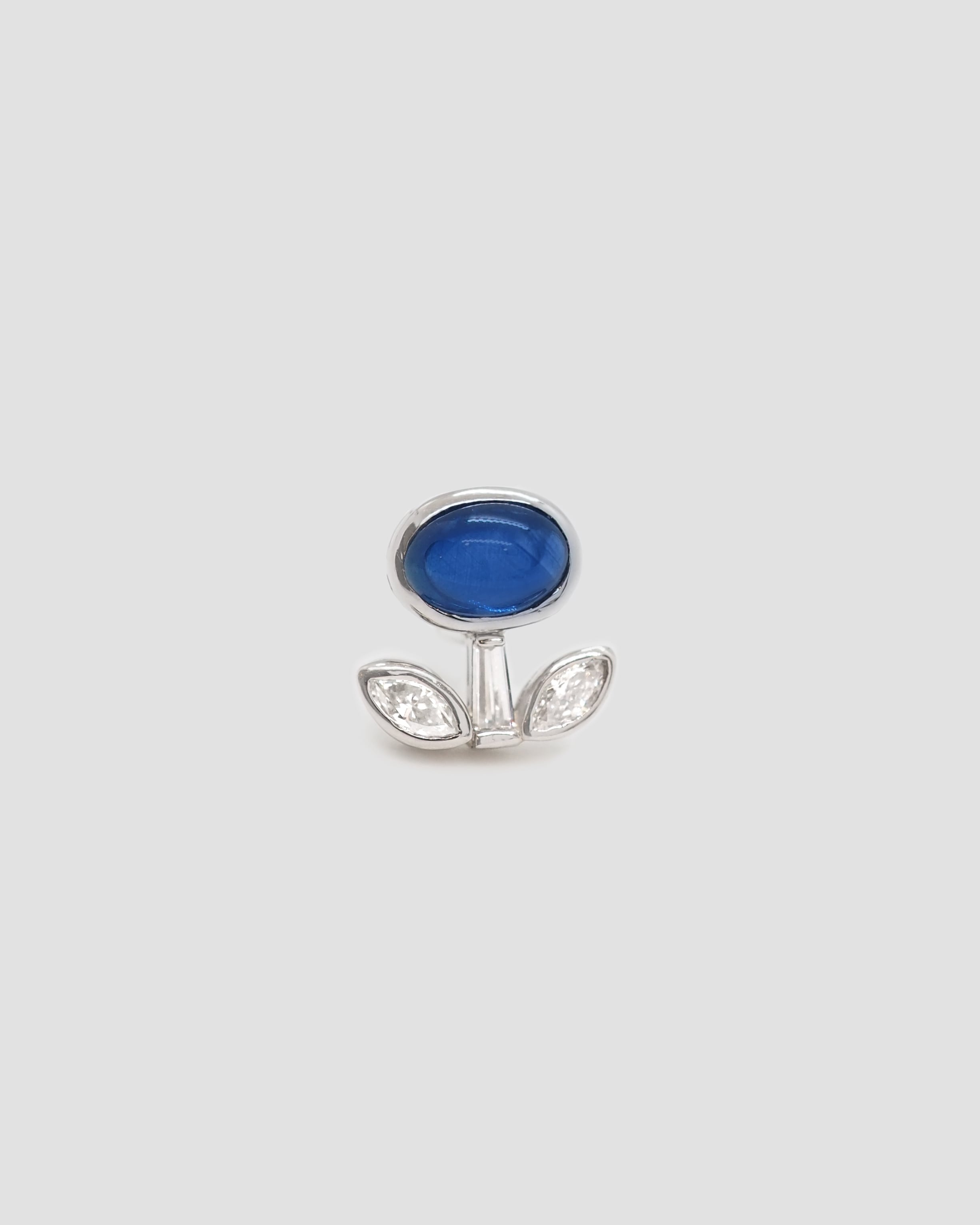 品番:15110 素材:Pt900/SV ルース:ブルーサファイア 0.71ct ダイヤ 0.15ct 寸法:約9.0x9.0mm 重さ:2.7g(SVキャッチ含む)