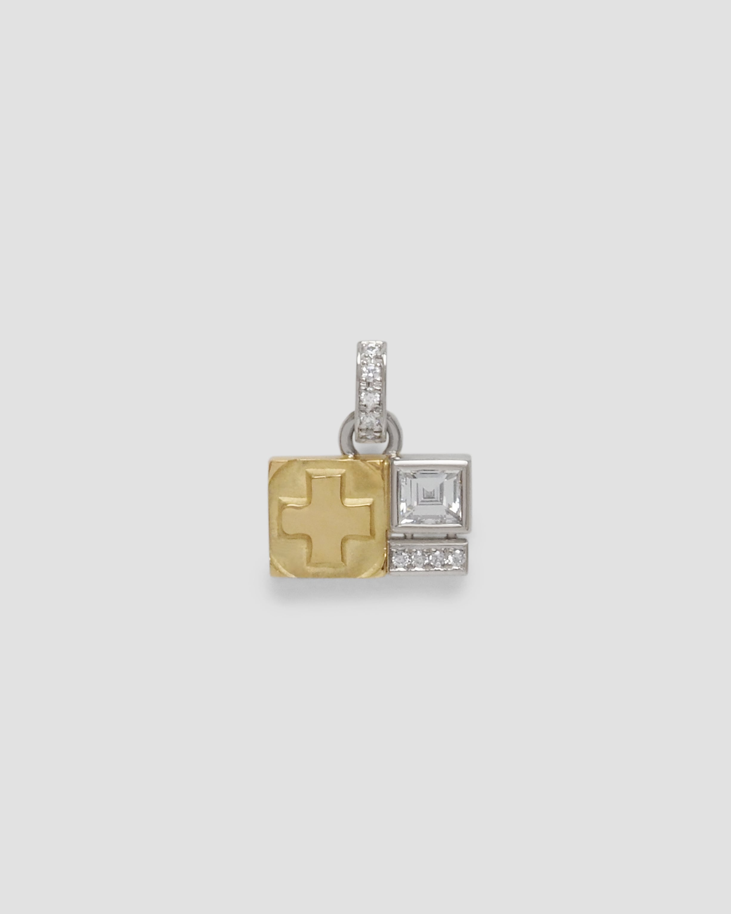 品番:13892 素材:K18YG/Pt900 ルース:ダイヤ 0.28ct/0.04ct 寸法:約7.0x11.8mm 重さ:3.2g
